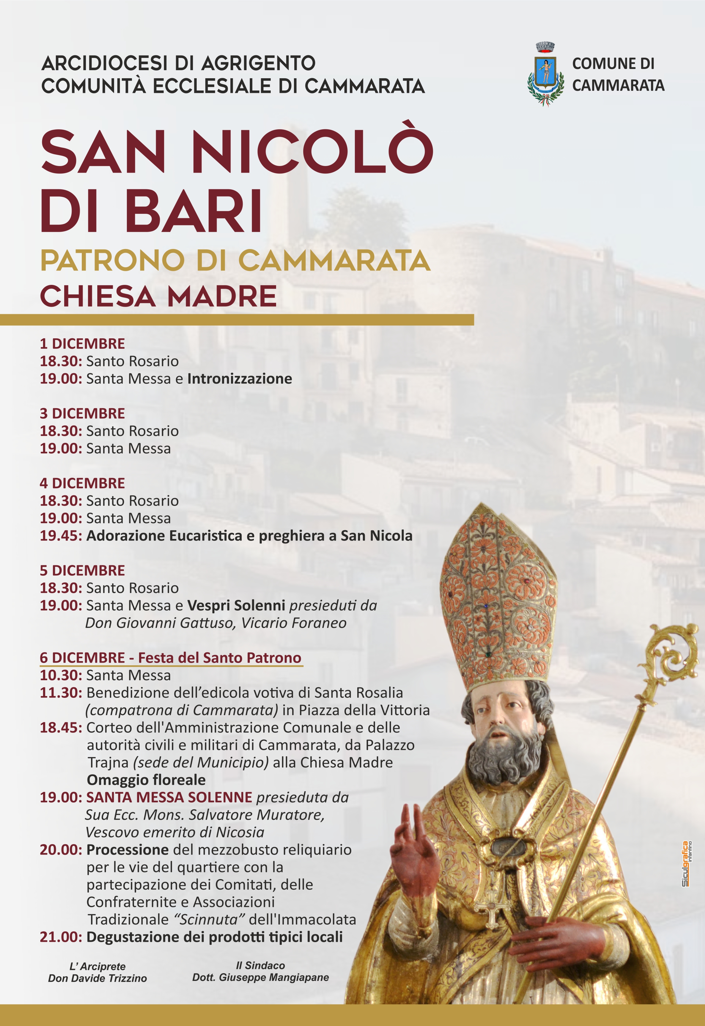 VENERDI 6 DICEMBRE - CELEBRAZIONE DI S. NICOLO' PATRONO DI CAMMARATA.