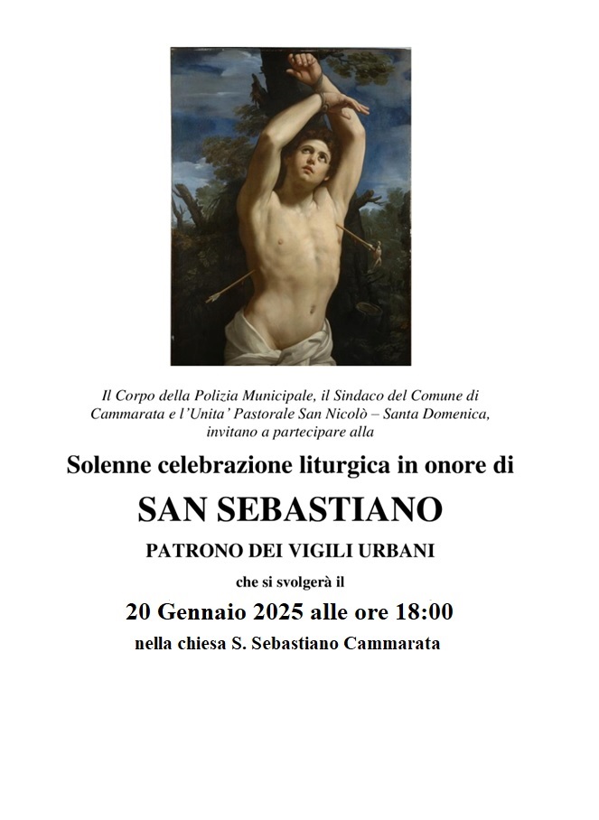 Anche Cammarata festeggerà San Sebastiano, con una Messa Solenne che sarà celebrata dall’ Arciprete don Davide Trizzino alle ore 18,00 nella Chiesa omonima.