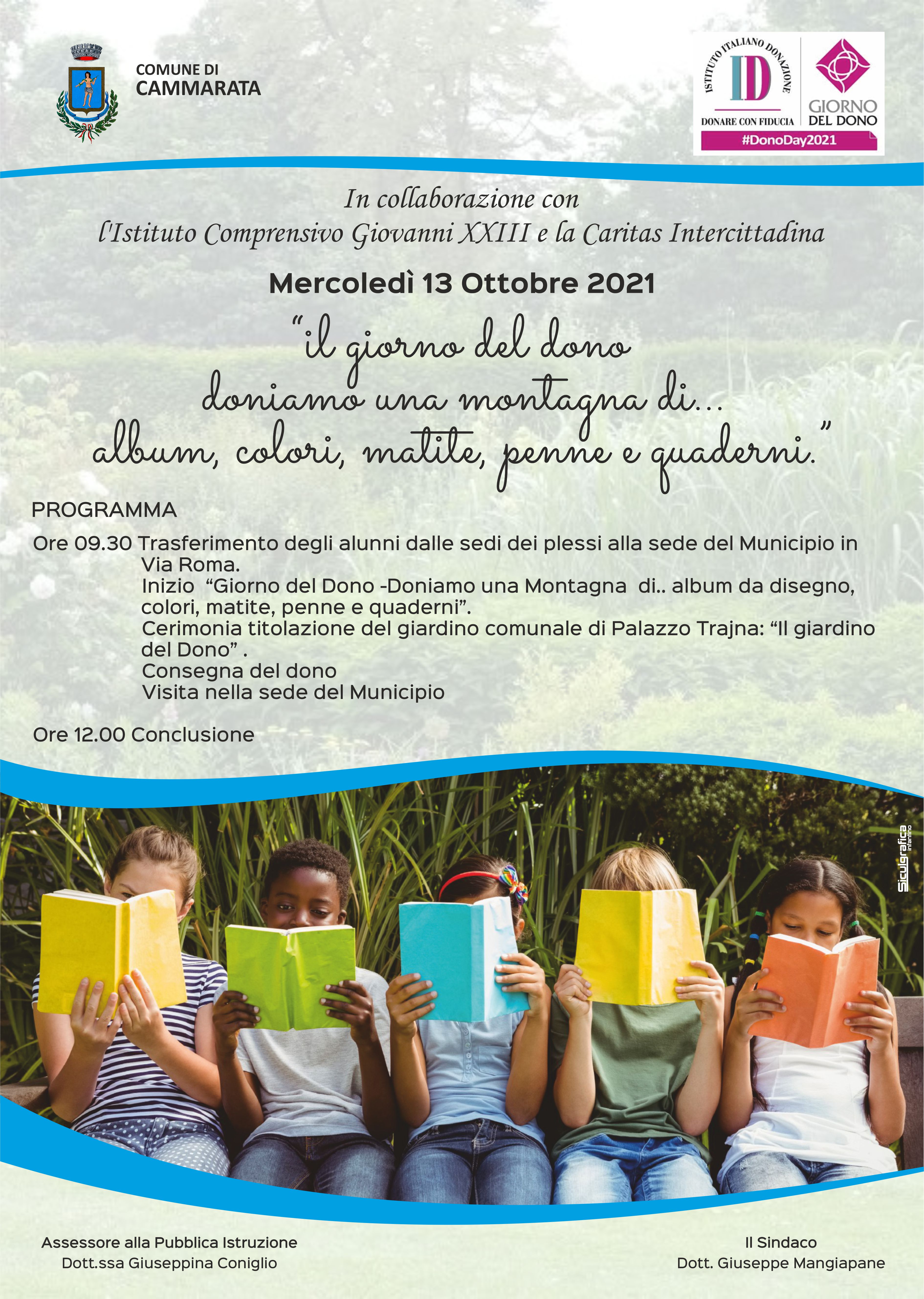 L'Istituto Italiano Donazioni (ID), al fine di diffondere la cultura del "dono" e di promuovere lo sviluppo di nuove espressioni artistiche in ambito scolastico e valorizzare i talenti delle nuove generazioni ha istituito la "giornata del dono".Anche il Comune di Cammarata in collaborazione con l'Istituto Comprensivo Giovanni XXIII e la Caritas Intercittadina ha voluto aderire a questa iniziativa per costruire insieme agli altri Comuni la mappa dell'italia che dona.