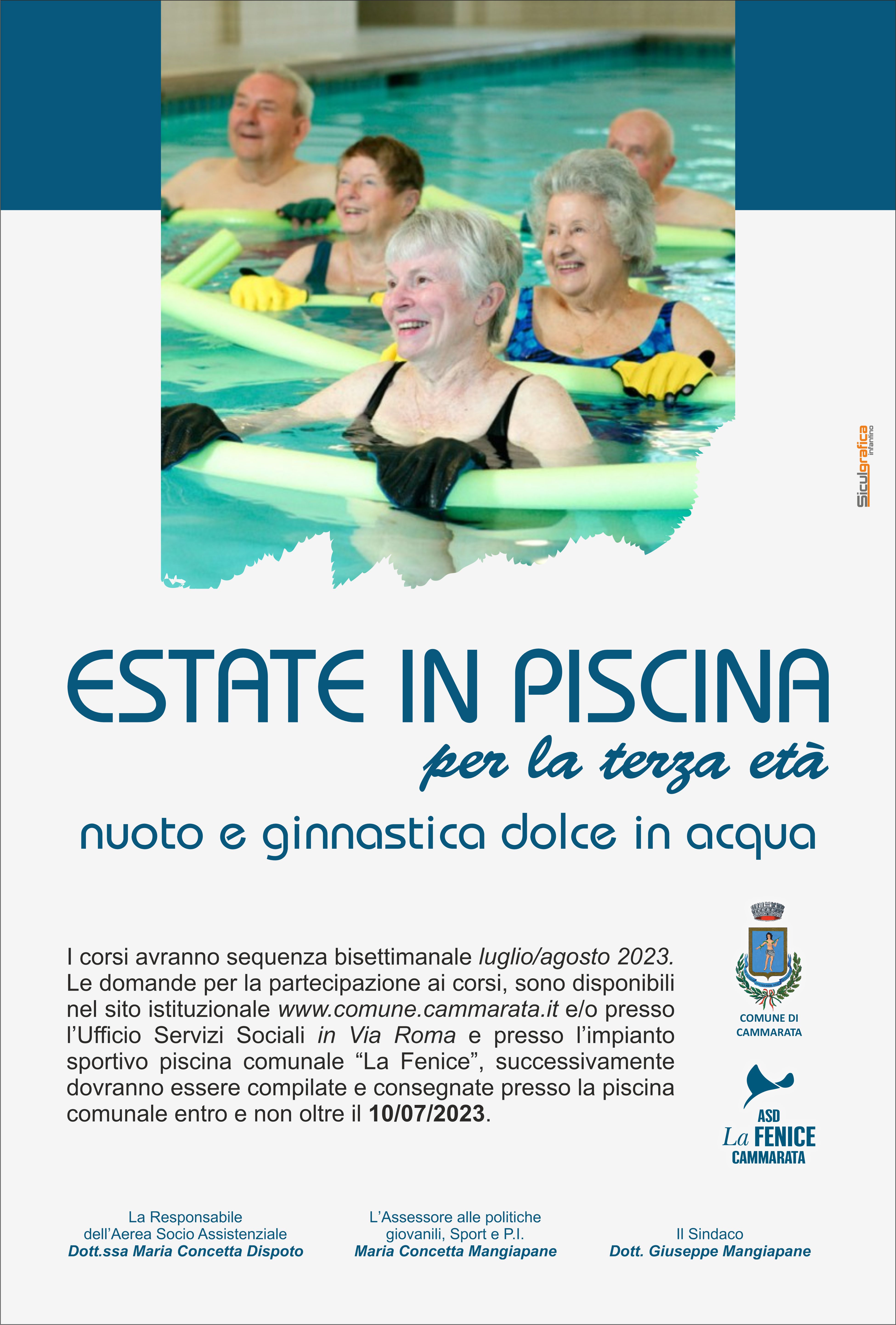 L'Amministrazione Comunale informa i cittadini che entro il 10 Luglio c.a possono presentare richiesta per partecipare a corsi di nuoto presso la Piscina "La Fenice "a Cammarata.