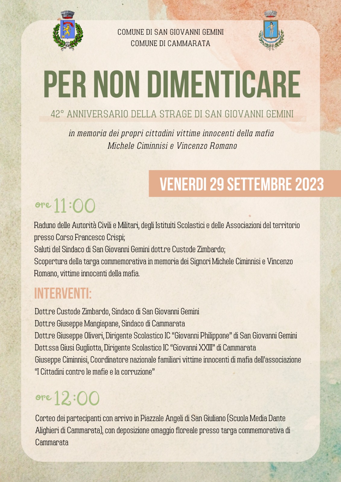 42° ANNIVERSARIO DELLA STRAGE DI SAN GIOVANNI GEMINI