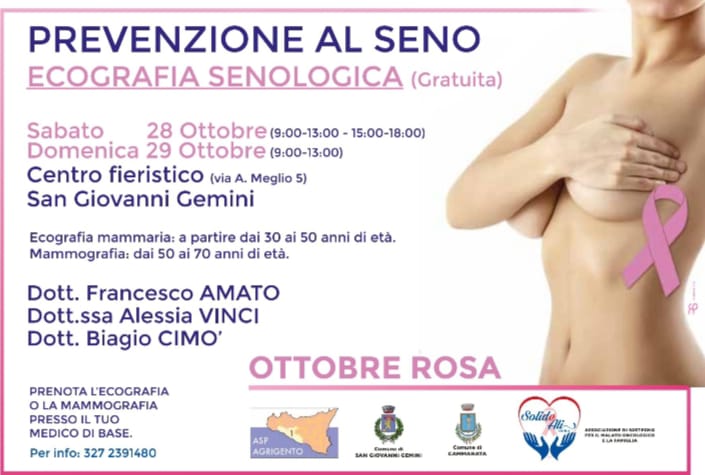 Seguirà sabato 28 ottobre e domenica 29 ottobre uno screening gratuito presso il centro fieristico di San Giovanni Gemini.