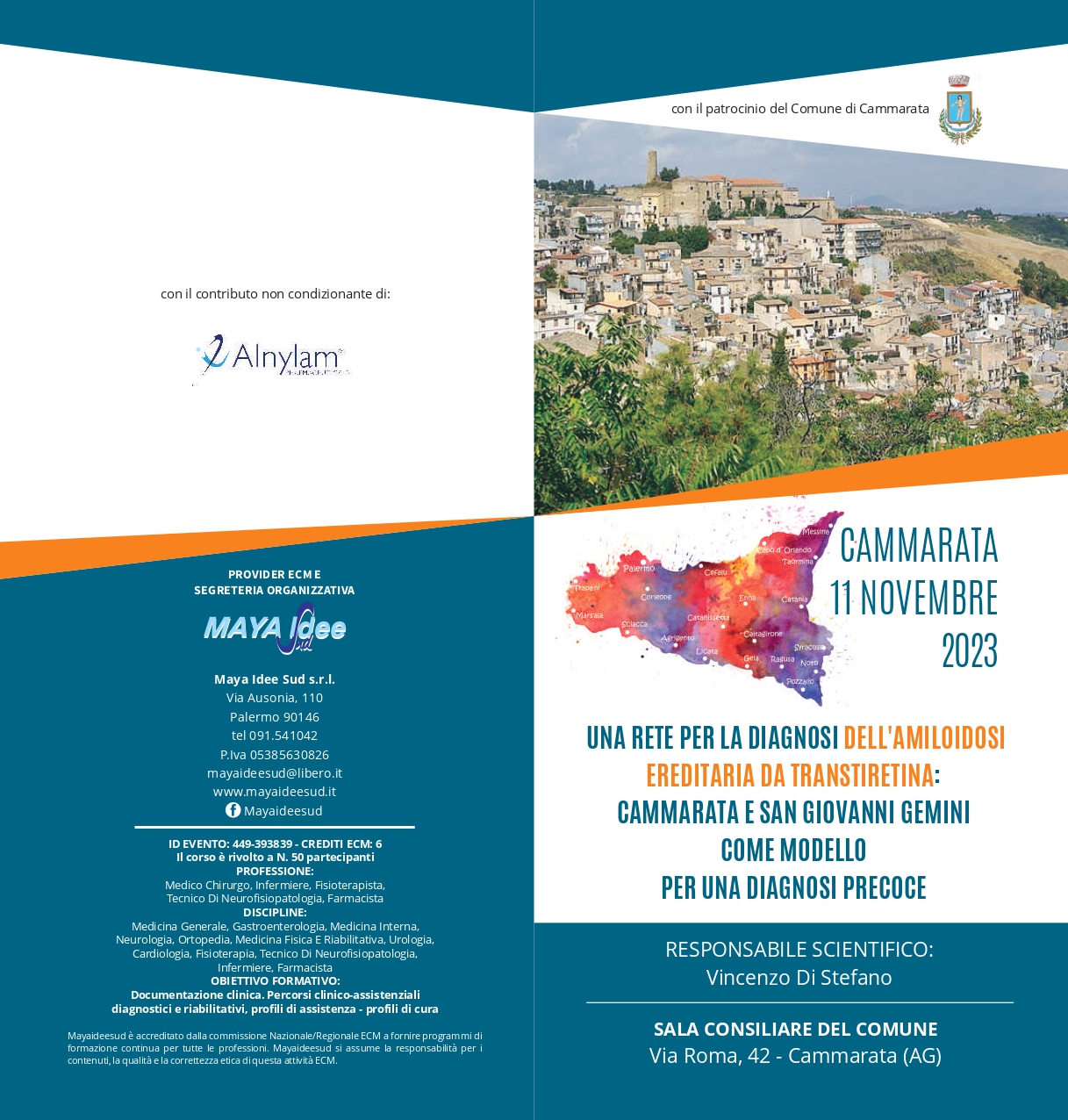 Si svolgerà sabato 11 novembre c.a. alle ore 8:30 presso la sala Consiliare del Palazzo Trajna, il progetto formativo in ambito sanitario presentato dalla Maya Idee Sud per la realizzazione di un convegno avente per tema " Una rete per la diagnosi dell'amiloidosi ereditaria da transtiretina".