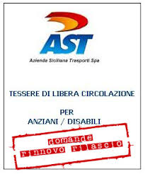 Si rende noto che le richieste per ottenere le tessere di libera circolazione extraurbana rilasciata dall'AST in favore dei soggetti portatori di hadicap, per l'anno 2020, devono essere inoltrate dal 23.09.2019 al 20.11.2019, pena la decadenza dal diritto.