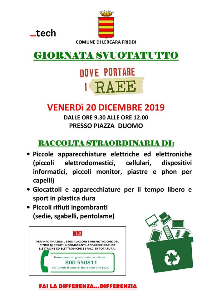 Venerdi' 20 Dicembre 2019 dalle ore 9,30 alle ore 12,30 presso Piazza Duomo
