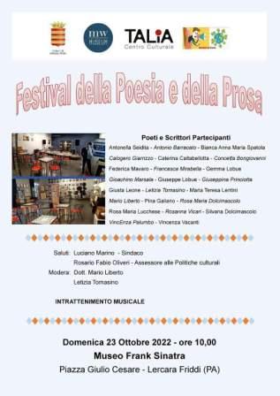 Festival della Poesia e della Prosa - Domenica 23 ottobre 2022, ore 10,00 - Museo Frank Sinatra, sito in P.zza G. Cesare