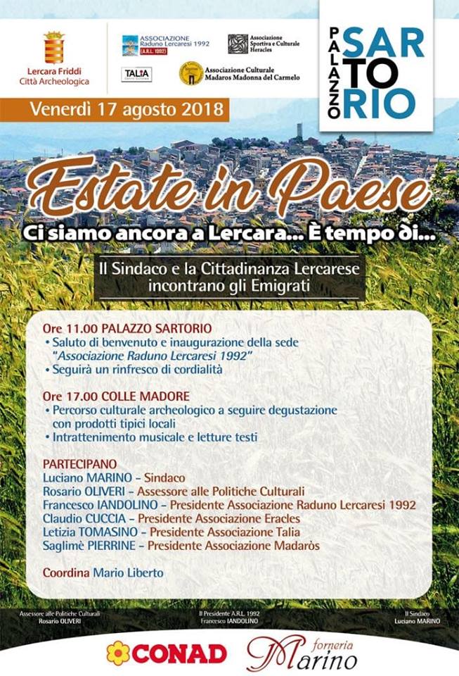 Venerdi' 17 agosto 2018 - Il Sindaco e la Cittadinanza Lercarese incontrano gli Emigrati