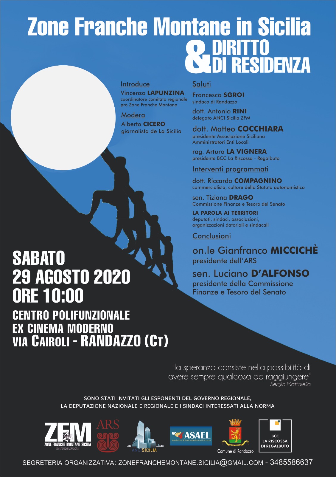 Il Sindaco informa che si terra' a Randazzo (CT) sabato 29 agosto il convegno dal titolo "Zone Franche Montane in Sicilia & Diritto di Residenza",